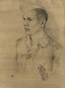 Porträt eines Soldaten mit Eisernem Kreuz, 1941, Maße: 58 x 44 cm, Zeichnung, Kohle auf farbig grundiertem INGRES-Büttenpapier, sign. u. dat. lu "WA 1941" Erbengemeinschaft Arndt Reg.Nr.: Z41-14/07-59