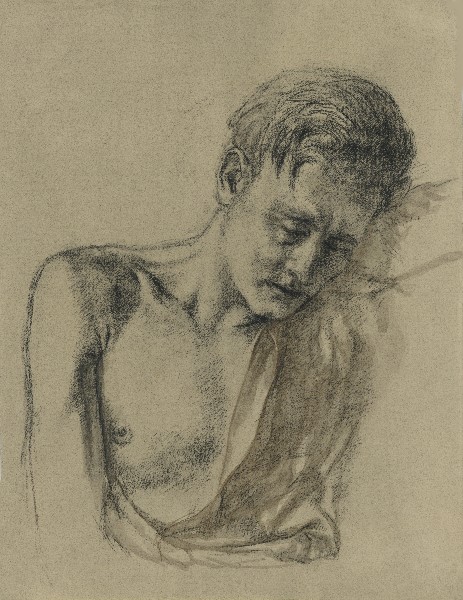 Soldat, schlafend, 1942, 73 x 29 cm, Zeichnung; Kohle auf grau-grünem Ingres-Büttenpapier