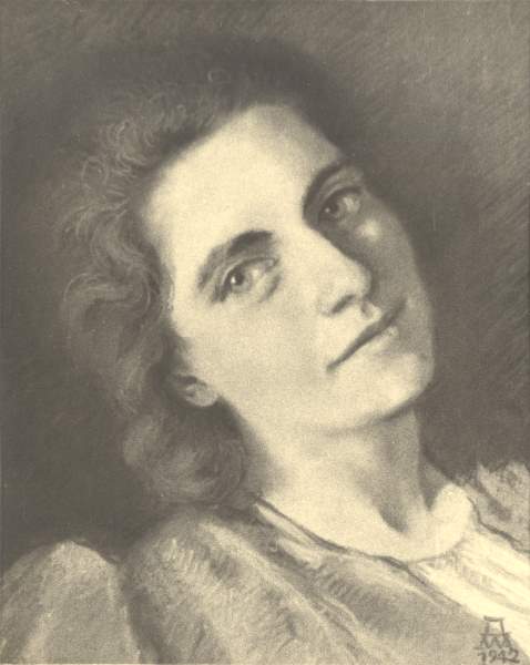 Porträt von A.A. mit geneigtem Kopf, 1942, Maße unbekannt, Gemälde, Pastell auf Karton