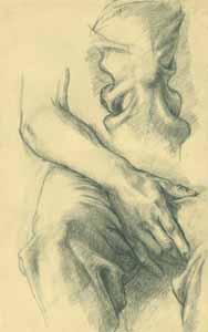 Arm über Schulter, 1943, Maße: 46 x 29 cm, Zeichnung, Kohle auf grauem Zeichenpapier, sign. u. dat. "WA 1943 ", Erbengem. Arndt - Reg.-Nr.: E 43 -14/06 - 20