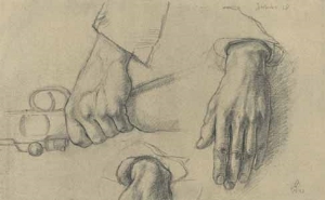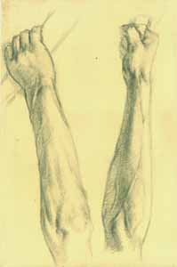 Männerarme hängend, 1943, Maße: 46 x 29 cm, Zeichnung, Kohle auf beigem Zeichenpapier, Erbengem. Arndt - Reg.-Nr.: E 43 -11/31 - 03