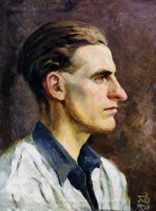 Selbstbildnis im Profil, 1943, Maße: 44 x 32 cm, Gemälde, Öl auf Leinwand auf Holzfaserplatte aufgezogen, sign. u. dat. ru "WA 1943 ", Erbengem. Arndt - Reg.-Nr.: B 43 - 17/21 - 07