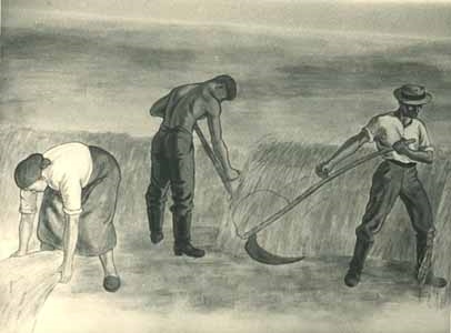 Bauern bei Ernte, 1943, Maße unbekannt, Zeichnung, Pastell auf Karton, Verbleib unbekannt -Abb.: von Foto, Reg.-Nr.: Z 43 - 40/36 - 18