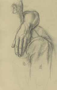 Arm auf dem Schoß, 1943, Maße: 46 x 29 cm, Zeichnung, Kohle auf beigem Zeichenpapier, sign. u. dat. ru "WA 1943 ", Erbengem. Arndt - Reg.-Nr.: E 43 -28/26 - 01