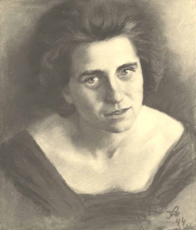 Porträt von A.A. im Kleid mit gr. Ausschnitt,