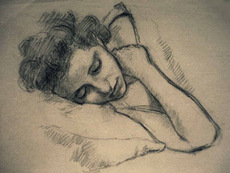 AA schlafend, 1944, 34 x 43 cm, Zeichnung, Kohle auf grau-beigem INGRES-Büttenpapier