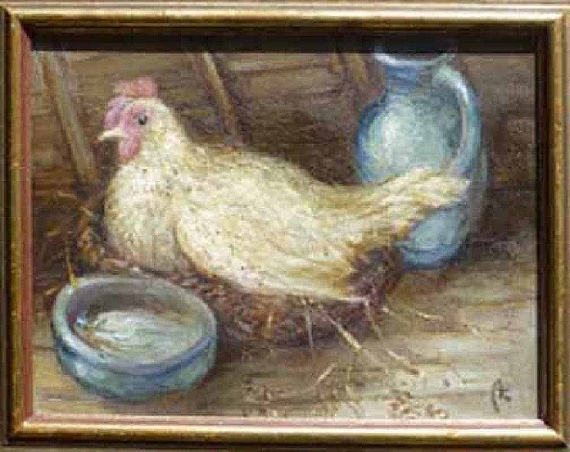 Stilleben mit Huhn und Krug, 1945, Gemälde, Öl auf Hartfaserplatte, sign. u. dat. ru " A. "