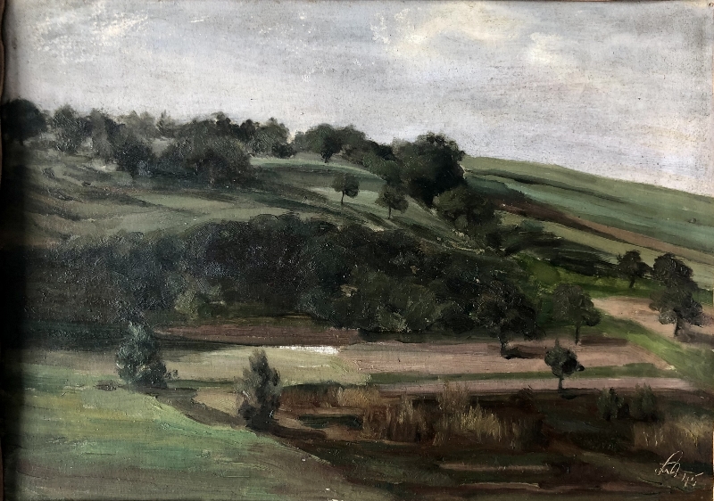 Ohne Titel, (Arbeitstitel: Landschaft mit Teich), 1945, Gemälde, Öl auf Leinwand, sign. u. dat. lu "Werner Arndt 1945"
