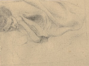 A.A. liegend im Schlaf, 1947, 23 x 33 cm, Zeichnung, Bleistift auf beigem Zeichenkarton; (RS von Reg.-Nr.:E46-26/02-2) Erbengem. Arndt - Reg.Nr.: E 46 - 26 / 01 - 01