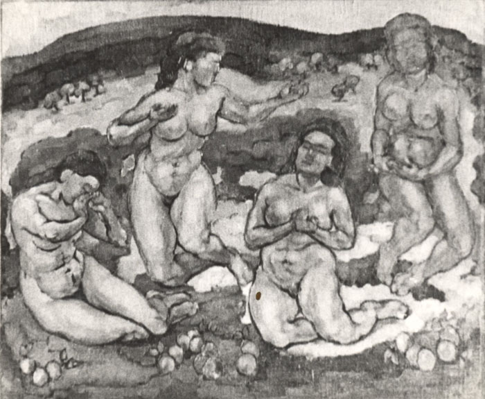 4 Akte in der Landschaft 1948, Gemälde, Ölfarbe auf grundierter Hartfaserplatte