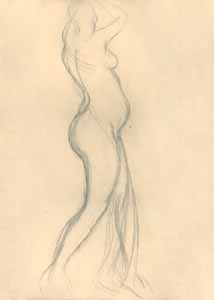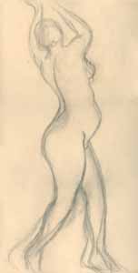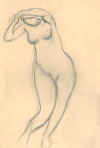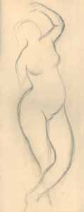 Akt stehend, rechte Seitenansicht mit erhobenen Armen 1948, 60 x 40 cm, Zeichnung, Kohle auf beigem Zeichenkarton; Erbengem. Arndt - Reg.Nr.: Z 48 - 24 /09 - 01