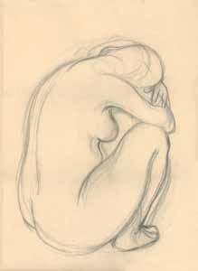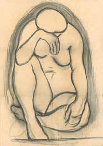 Kauernde (Akt hockend, rechte Seitenansicht), 1948, 60 x 41 cm, Zeichnung, Kohle auf beigem Zeichenpapier Erbengem. Arndt - Reg.Nr.: Z 48 - 24 / 25 - 07