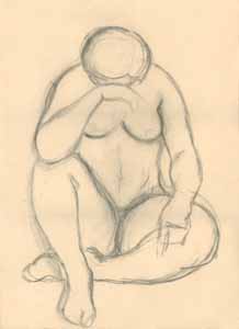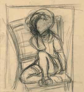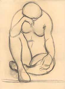 F.A. auf Stuhl hockend 1948, 30 x 27 cm, Zeichnung, Kohle auf beigem Zeichenkarton; Erbengem. Arndt - Reg.Nr.: Z 48 - 23 / 32 - 14