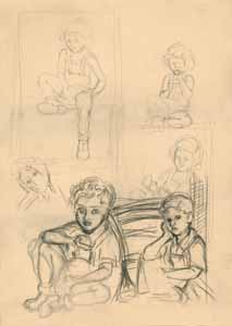 Skizzen vom Sohn Friedrich, 1948, 59 x 41 cm, Zeichnung, Kohle auf beigem Zeichenkarton; Erbengem. Arndt - Reg.Nr.: Z 48 - 14 / 13 - 13