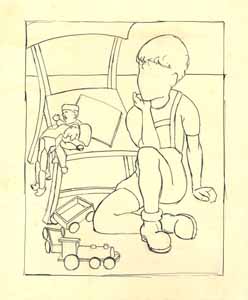 Sohn Friedrich beim Spielen 1948, 29 x 23 cm, Zeichnung, Tusche auf beigem Zeichenkarton; Erbengem. Arndt - Reg.Nr.: Z 48 - 21 / 28 - 15