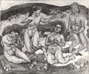 4 Akte in der Landschaft 1948, Zeichnung, Pastell Verbleib unbekannt - Abb.: von Foto, Reg.Nr.: Z 48 - 23 / 31 - 17