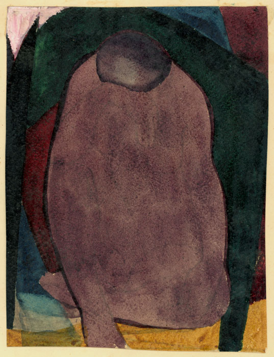 Hockende in grünem Sessel; 1949, 17 x 13 cm, Aquarell; Aquarell-, Öl- und Temperafarbe auf beigem Büttenpapier