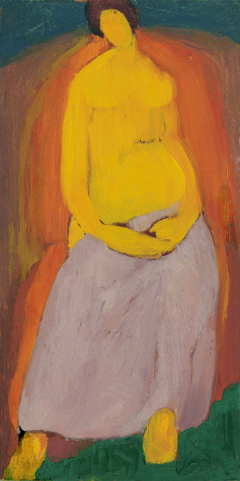 Frau im roten Sessel; 1949, 29 x 15 cm, Zeichnung, Öl- und Temperafarbe auf beigem Büttenpapier