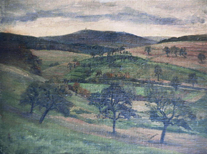 Landschaft bei Eisenbach; 1949, 30 x 39 cm, Zeichnung, Öl auf grundierter Hartfaserplatte