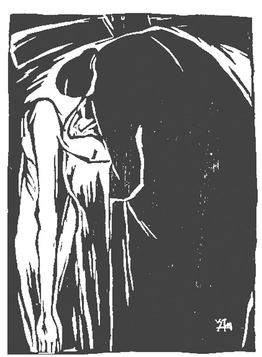 Pieta I; 1949, 37 x 26, cm, Druckgrafik: Holzschnitt, Aufl.: 50, Platten: 1, handgedruckt auf Japan- und Büttenpapier
