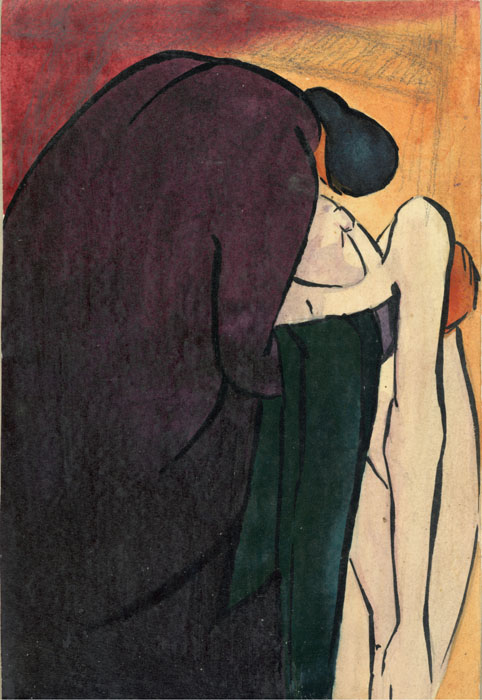 Pieta; 1949, 26 x 17 cm, Zeichnung, Bleistift, Aquarell-, Öl-, Temperafarbe auf beigem Zeichenkarton