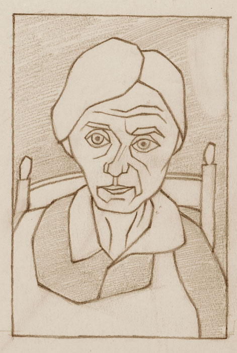 Porträt A. Schuhmacher (Schwiegermutter); 1950, 15 x 10 cm, Zeichnung, Bleistift auf beigem Büttenpapier