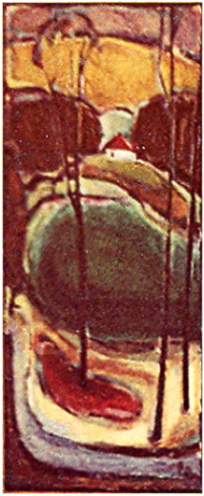 Wiese mit Bäumen (Dombachtal I ); 1950, 110 x 60 cm, Gemälde, Öl auf Hartfaserplatte