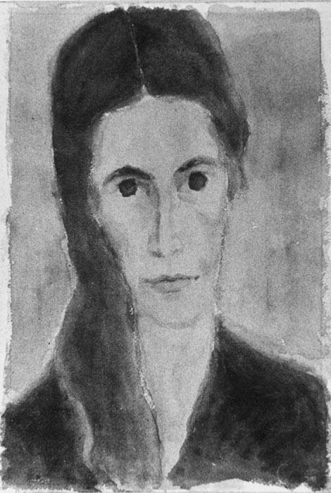 Porträt Frau G.W. mit Haar einseitig; 1950, 84 x 35 cm, Aquarell auf beigem Büttenpapier
