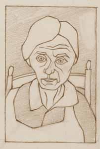 Porträt A. Schuhmacher (Schwiegermutter); 1950, Maße: 15 x 10 cm, Zeichnung, Bleistift auf beigem Büttenpapier; Erbengem. Arndt - Reg.Nr.: E 50 - 03 / 06 - 01