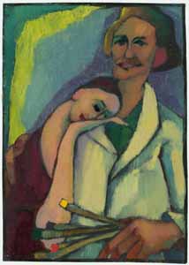 Selbstporträt mit Modell; 1950, Maße: 23 x 16 cm, Gemälde, Öl auf grundiertem Karton; Erbengem. Arndt - Reg.Nr.: B 50 - 07 / 26 - 04