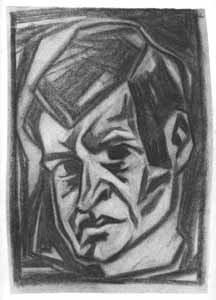Porträt Heinz Otto Müller-Erbach; 1950, Maße: 28 x 20 cm, Zeichnung, Kohle auf Japanpapier; Privatbesitz F.A. - Reg.Nr.: Z 50 - 03 / 05 - 06