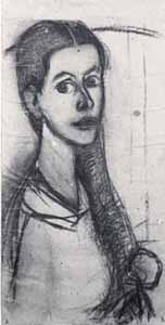 Porträt Frau G.W. mit Haare einseitig; 1950, Maße: ? Zeichnung, Kohle auf beigem Karton; Verbleib unbekannt - Reg.Nr.: E 50 - 50 / 35 - 14