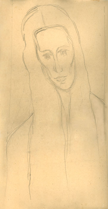 Frau mit offenem Haar I 1951, 60 x 30cm,Zeichnung, Bleistift auf beigem Karton