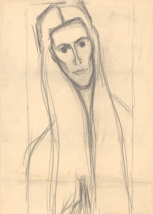 Frau mit offenem Haar III 1951, 60 x 30cm,Zeichnung, Bleistift auf beigem Karton