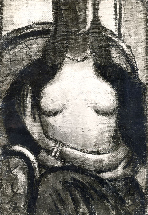 Frau mit schwarzem Umhang, 1952, 85 x 58 cm,Gemälde, Öl auf Leinwand und auf Hartfaserplatte aufgezogen