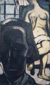 Selbstbildnis mit Akt, 1952, 98 x 56 cm, Gemälde, Öl auf Hartfaserplatte, Privatbesitz F.A., Griesheim - Reg.Nr.: B52 - 50 / 34 - 01
