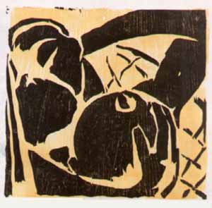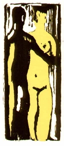 Menschenpaar; 1952, 67 x 27 cm, Druckgrafik: Farbholzschnitt auf Japan-/ Büttenpapier, 2 Platten, Reg.Nr.: H52-50/56-06