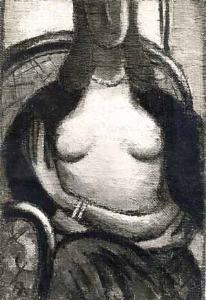 Frau mit schwarzem Umhang, 1952, 85 x 58 cm, Gemälde, Öl auf Leinwand und auf Hartfaserplatte, aufgezogen Privatbesitz F.B., Bad Homburg, Reg.Nr.: B52 - 50 / 40 - 05