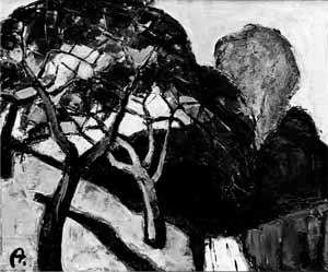 Bäume am Hang, 1952, Gemälde, Öl auf Hartfaserplatte, sign. lu "A"; Privatbesitz Fr. E.M., Ffm, Reg.Nr.: B52 - 50 / 86 - 07
