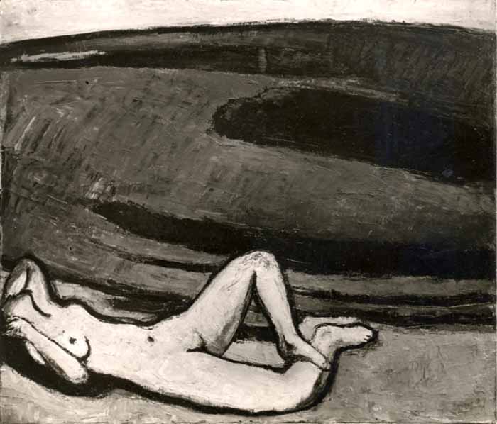 Frau am Strand; 1953, Gemälde: Öl auf Hartfaserplatte, von WA zerstört