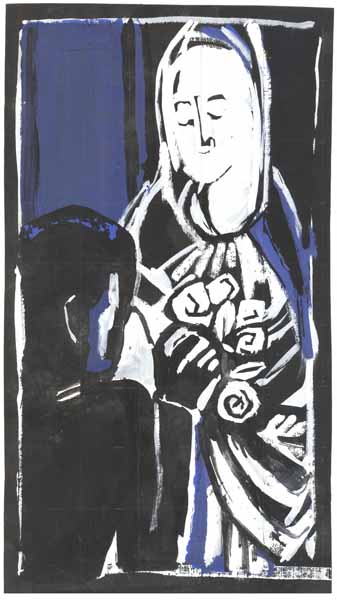Heilige Elisabeth; 1953, 29 x 16 cm,Zeichnung: Tempera auf schwarzem Karton