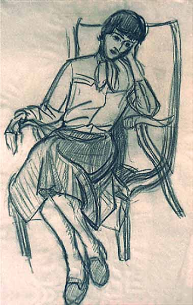 Porträt von Rita Molin 1953, 62 x 42 cm,Zeichnung: Kohle auf beigem INGRES-Büttenpapier,