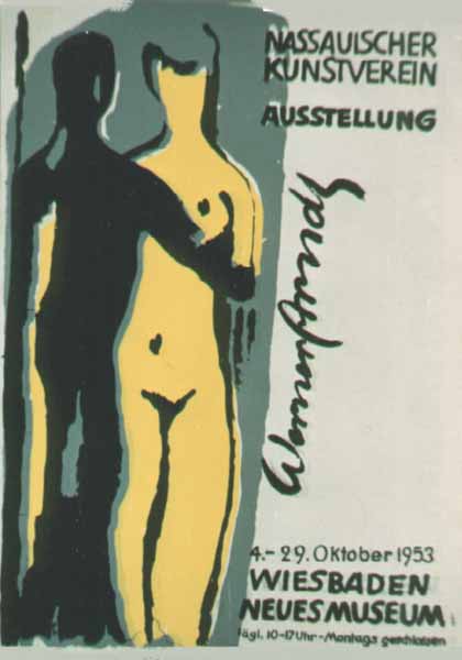 Menschenpaar (Ausstellungs-Plakat) 1953, 67 x 42 cm,Druckgrafik: Handsiebdruck auf beigem Druckpapier