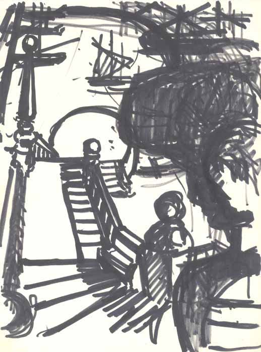 Sitges, Spanien, 1954, 28 x 21 cm, Zeichnung, Tusche (Filzstift) auf Zeichenblockpapier