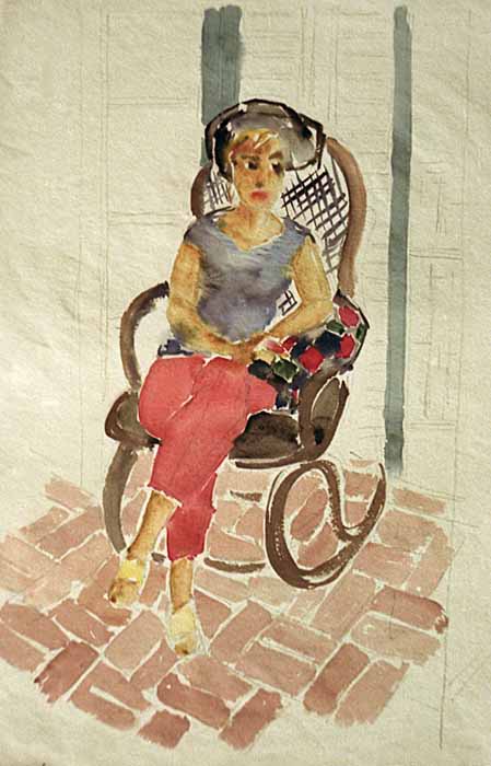 Junge Frau im Schaukelstuhl, 1954, 60 x 41 cm, Zeichnung, Aquarell auf beigem Büttenpapier