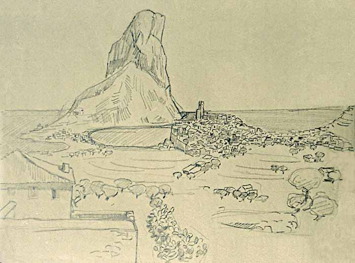 Alicante, Spanien 1954, 44 x 50 cm, Zeichnung, Bleistift auf beigem INGRES-Büttenpapier