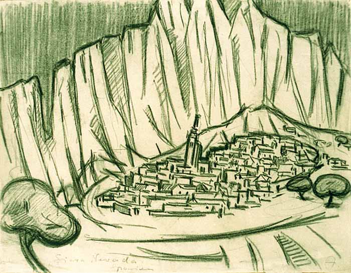 Sierra Nevada, Spanien 1954, 49 x 62 cm, Zeichnung, Schwarze Kohle auf Japanpapier