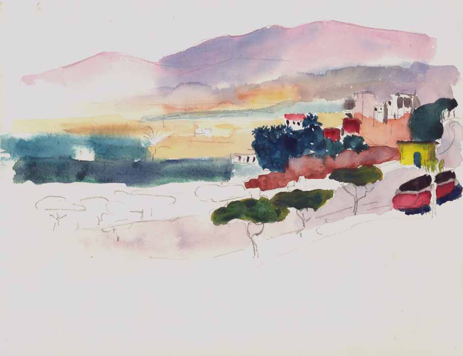 Marrokanische Landschaft, 1954, 19 x 31 cm, Zeichnung, Aquarell auf Büttenpapier