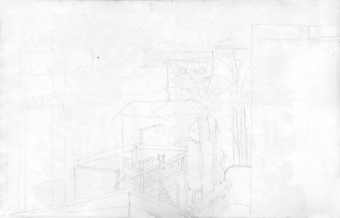 Marrokanische Stadtansicht, 1954,x cm, Zeichnung, Bleistift auf Büttenpapier