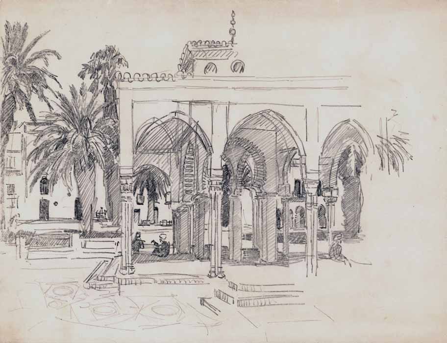Palast in Tanger, 1954, 40 x 50 cm, Zeichnung, Aquarell auf Japanpapier